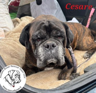 Cesare è un meraviglioso Boxerone di 10 anni, un gigante buono dalla dolcezza infinita. È un cane equilibrato, abituato a vivere in famiglia: adora le persone, è bravissimo con i bambini e convive serenamente con cagnoline femmine, e anche con i gatti con il giusto inserimento.